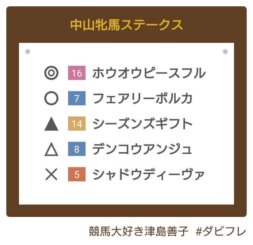 他にも重賞ではgⅱ京都新聞杯3着の実績があり、2勝クラスの中では格上の感がある。 間隔は開いたが、新馬戦2着の実績から苦にしないタイプだし引き続き同じ舞台なら勝ち負け必至。 《先週の推奨馬成績》 ★土曜日・阪神9r・小豆島特別 7着チュウワノキセキ ★日曜日・中山9r.
